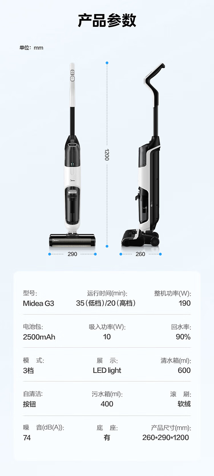 代发美的(Midea)家用手持无线无尘感洗地机G3 吸拖洗一体 自动清洁 双水箱 干湿两用 拖地机擦地机 电动拖把 手持无线
