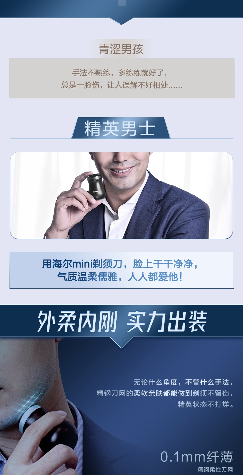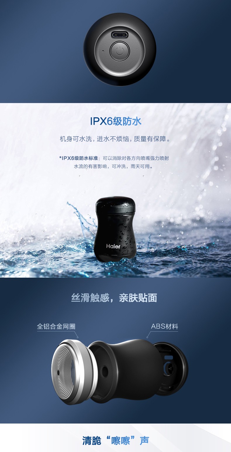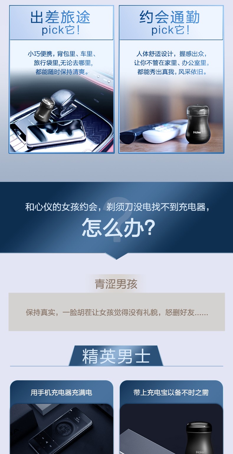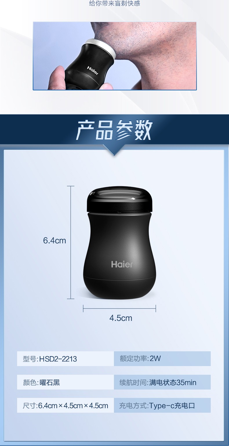 代发海尔(Haier)剃须刀便携迷你剃须刀小蛮腰胡须刀男士电动出差旅行刮胡刀 天蓝色 SD2