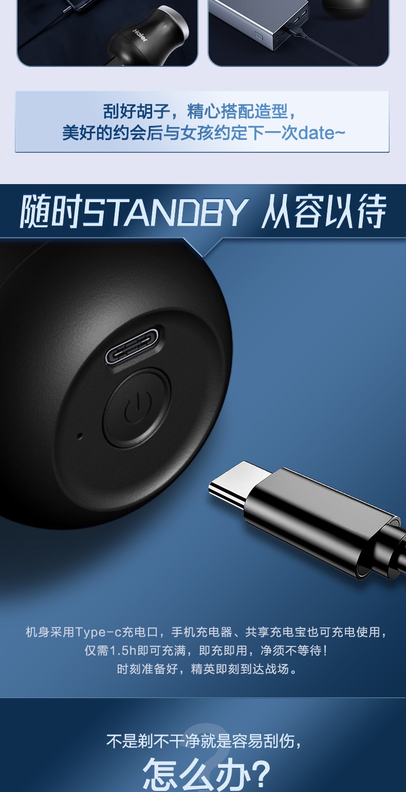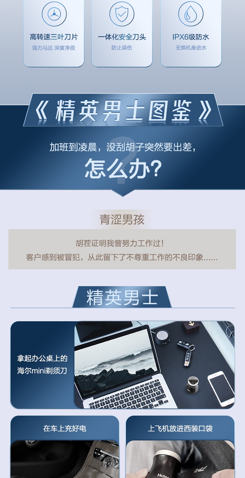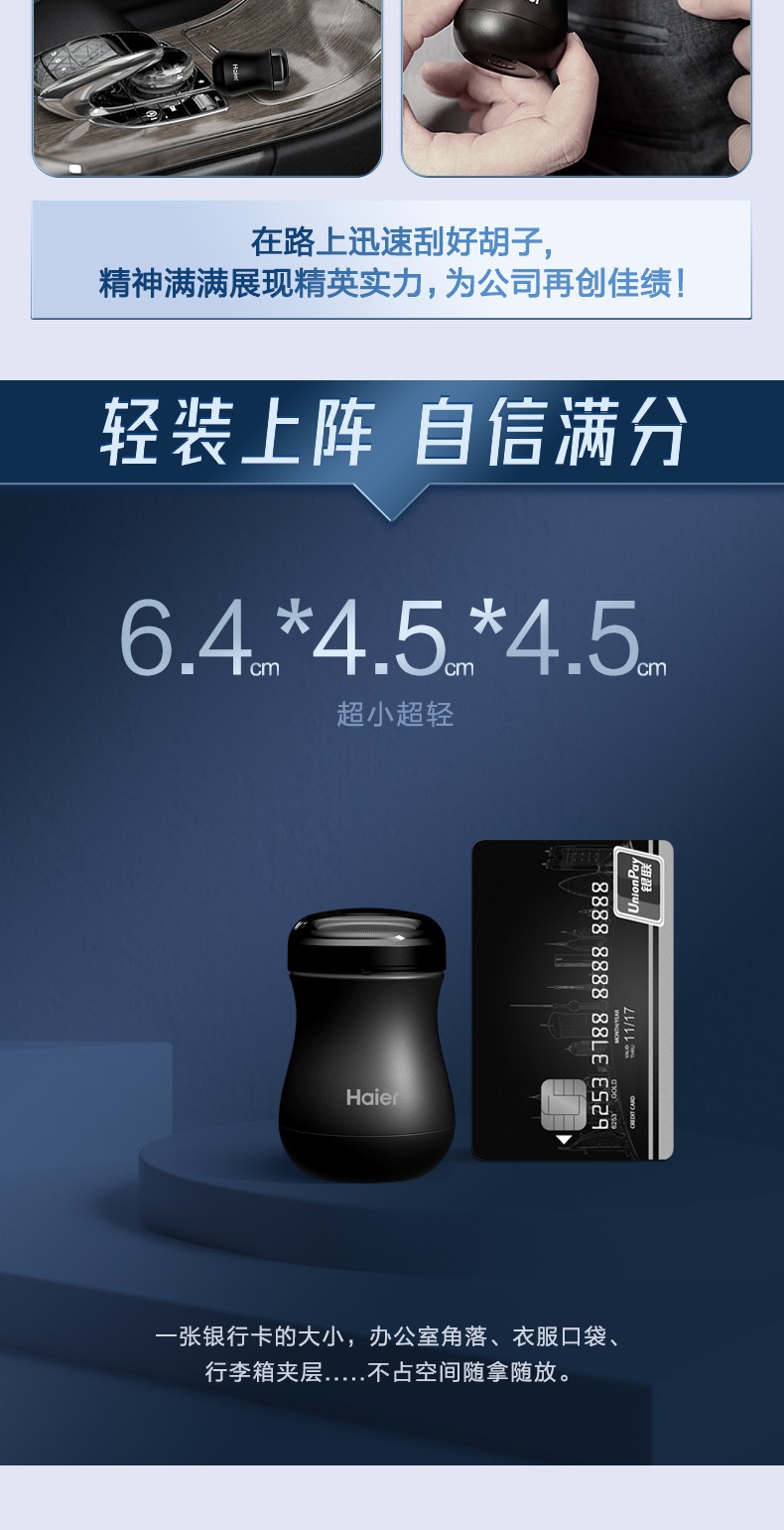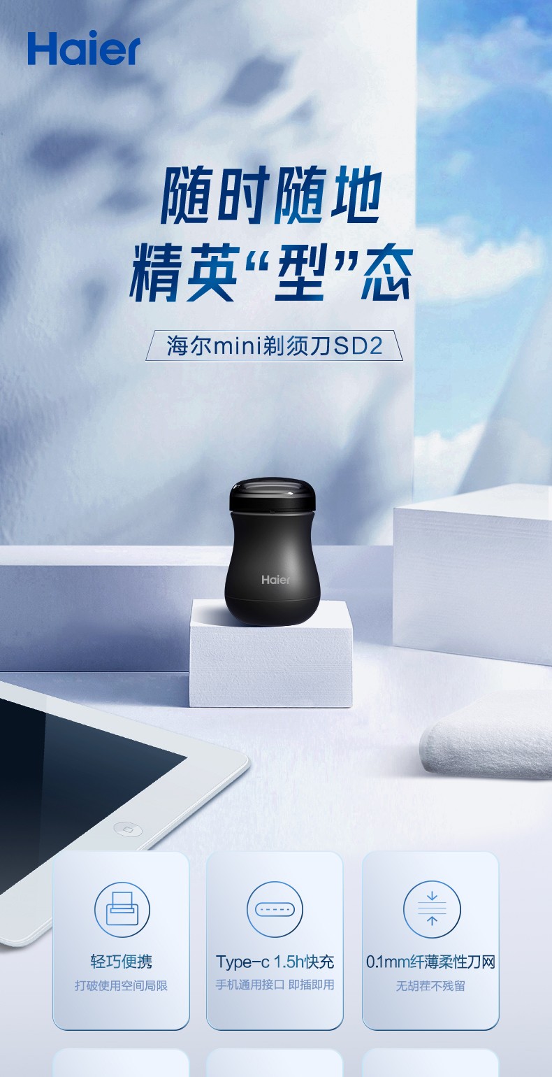代发海尔(Haier)剃须刀便携迷你剃须刀小蛮腰胡须刀男士电动出差旅行刮胡刀 天蓝色 SD2