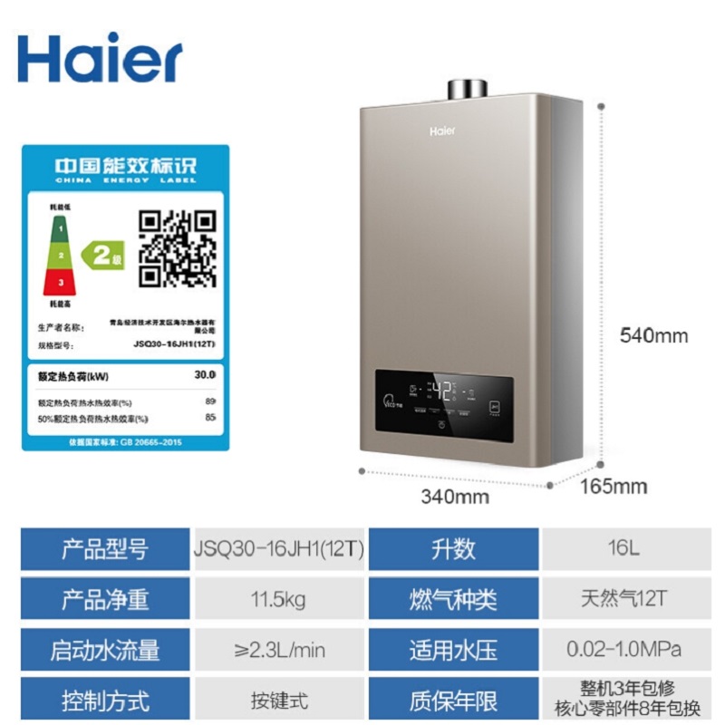 代发海尔(Haier)16升水气双调精控恒温燃气热水器智能厨宝洗三重防冻JSQ30-16JH1(12T)天然气