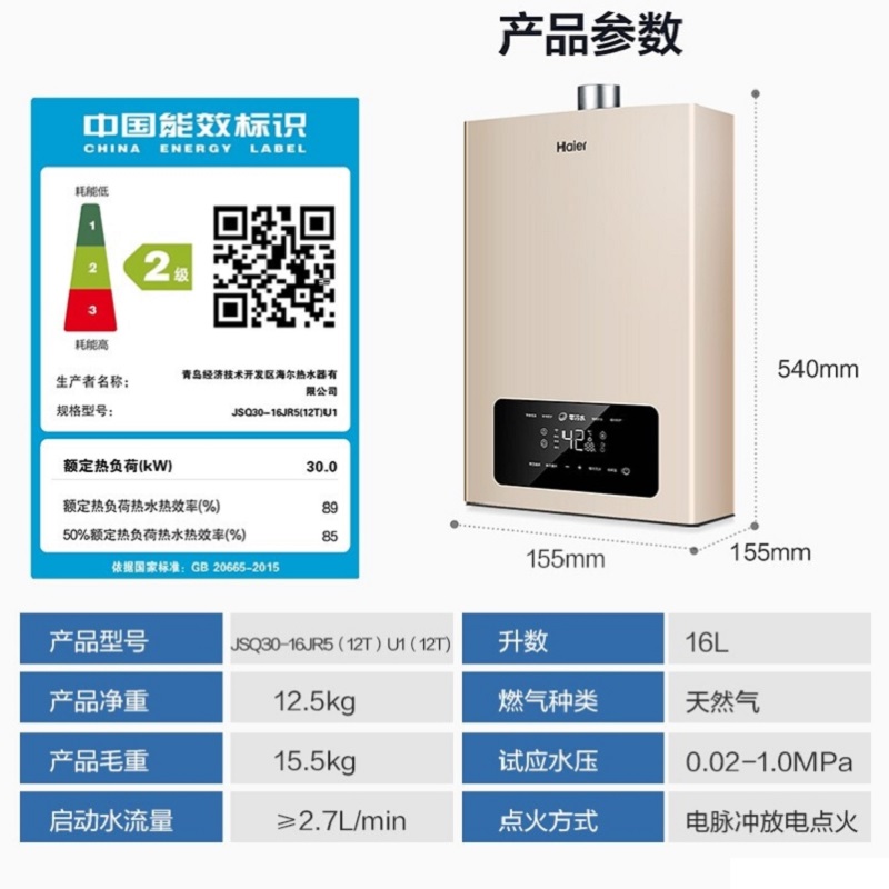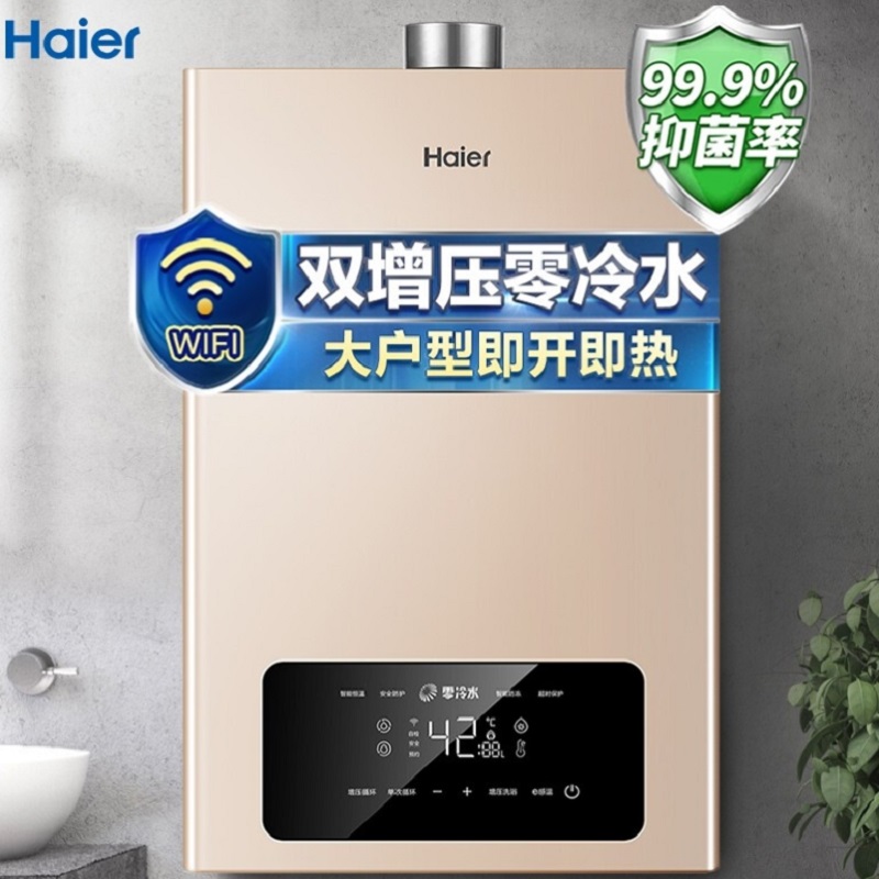 代发海尔(Haier)16升双增压双循环零冷水燃气热水器天然气五重净化WIFI智控JSQ30-16JR5(12T)U1