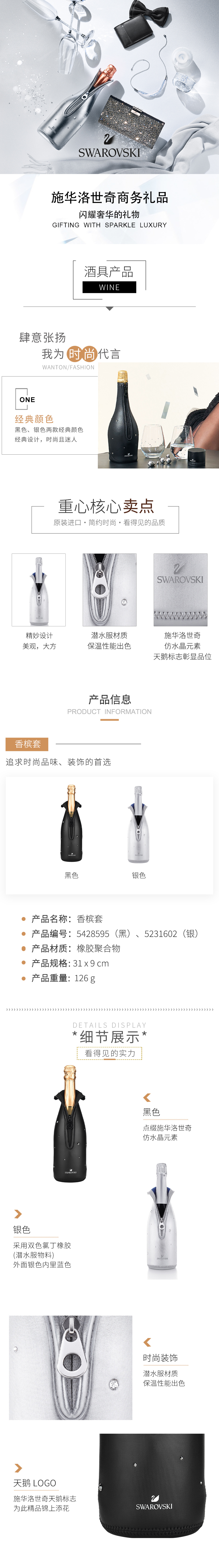 代发施华洛世奇水晶香槟套黑色/白色