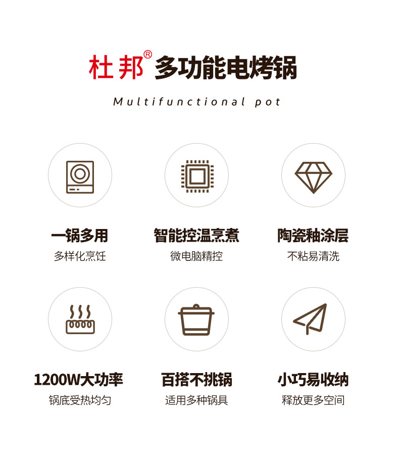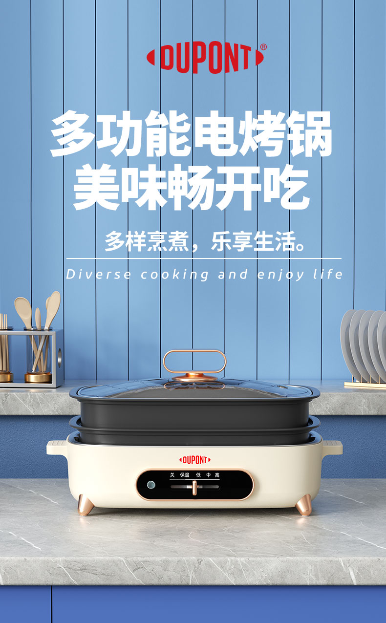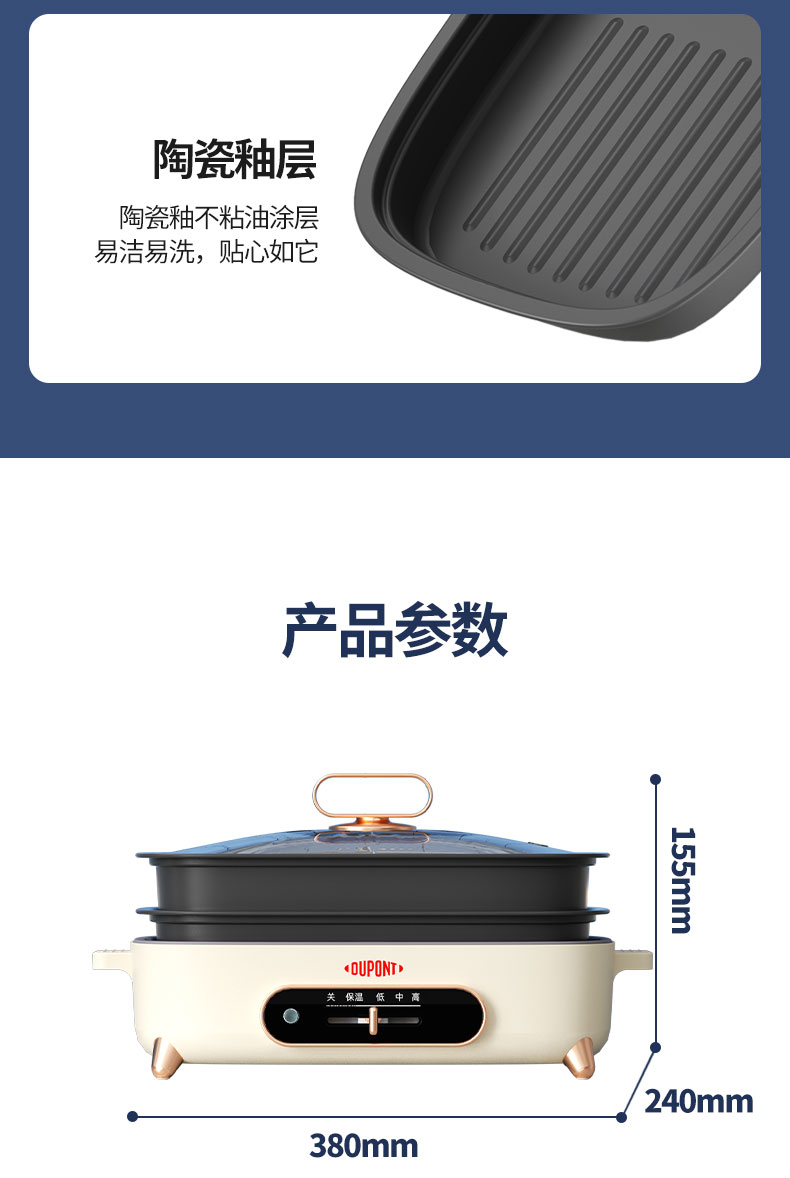 代发杜邦(DUPONT)多功能电烤锅 PKG-KY1201一机双盘可更换2L