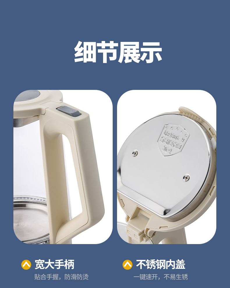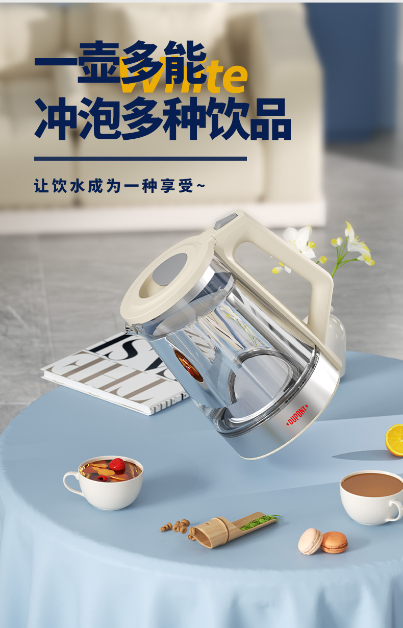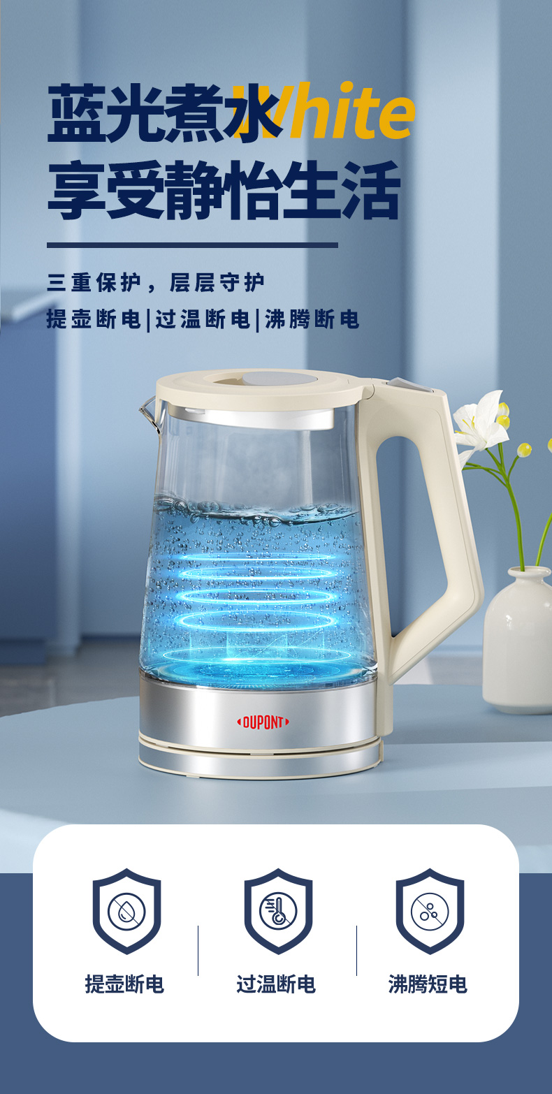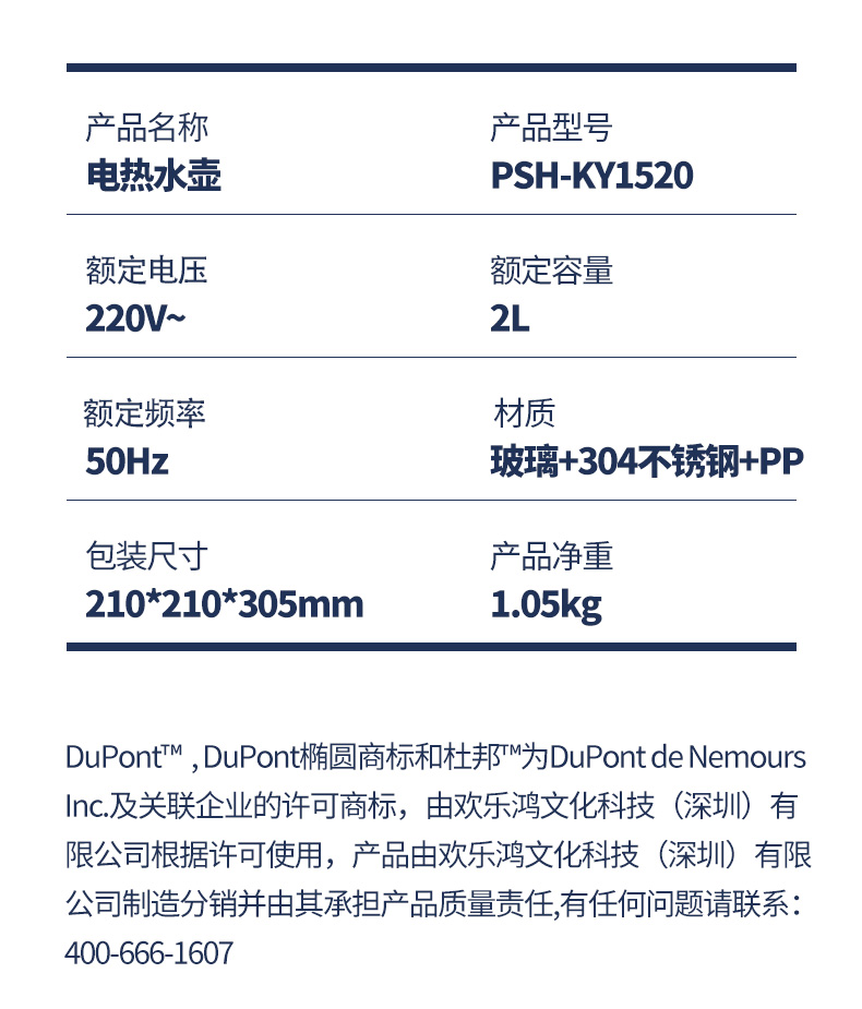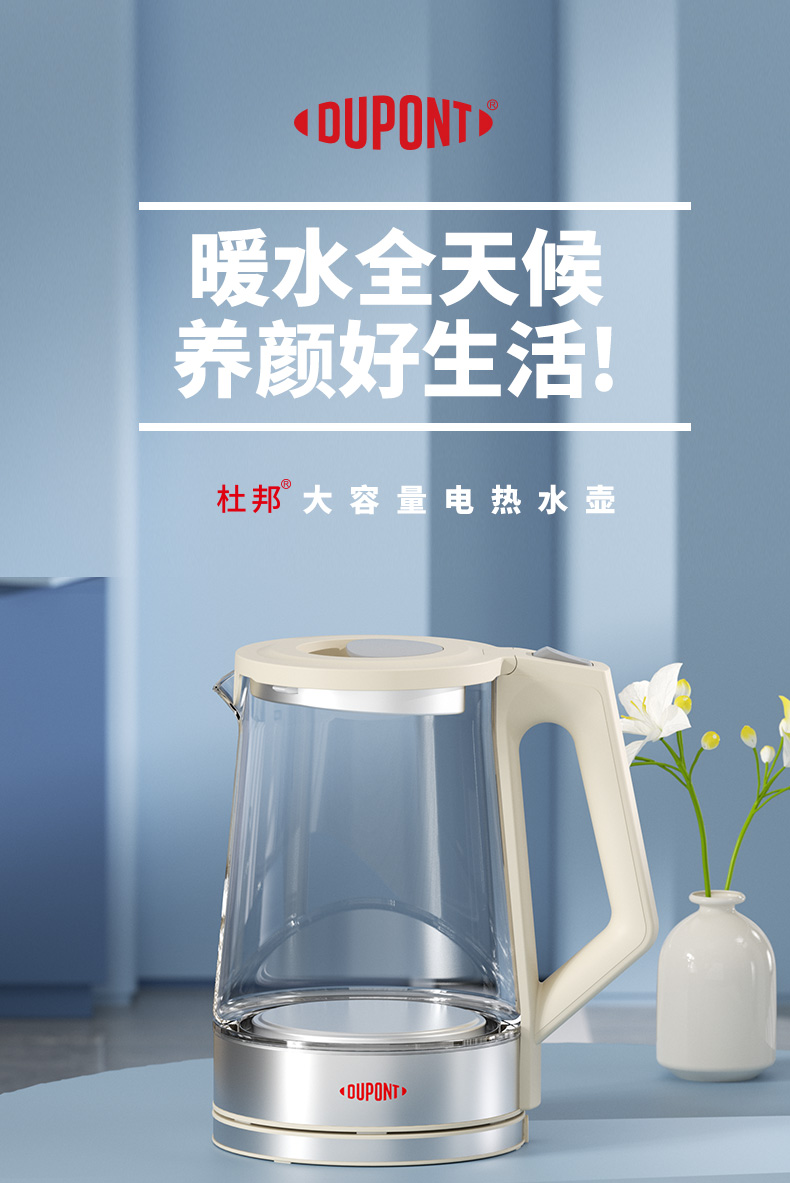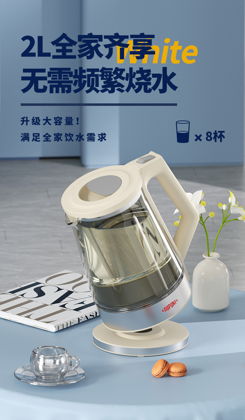 代发杜邦(DUPONT) 电热水壶PSH-KY1520 白色2L大容量三重保护
