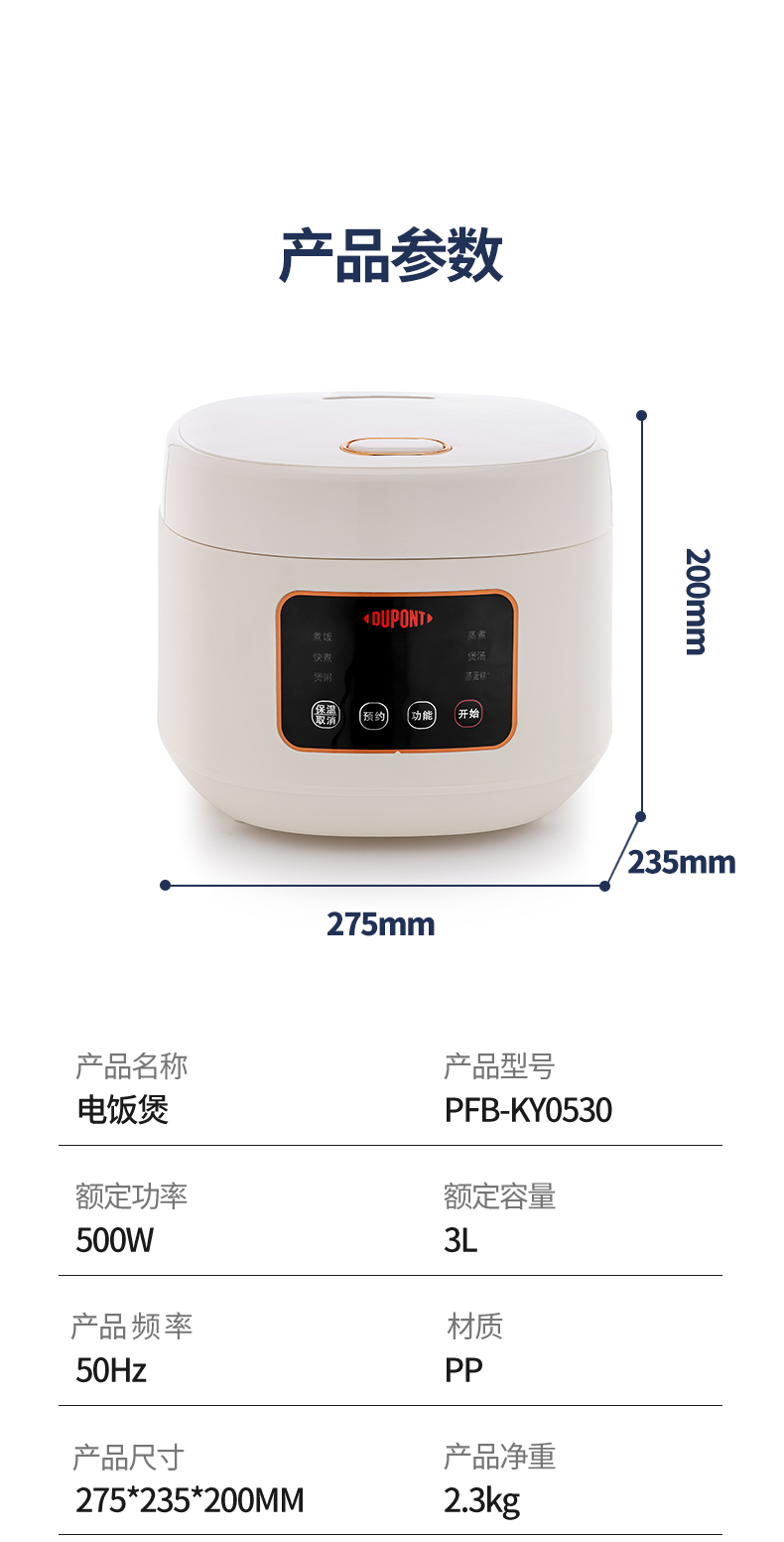 代发杜邦(DUPONT)电饭煲 PFB-KY0530 3L陶瓷不沾涂层