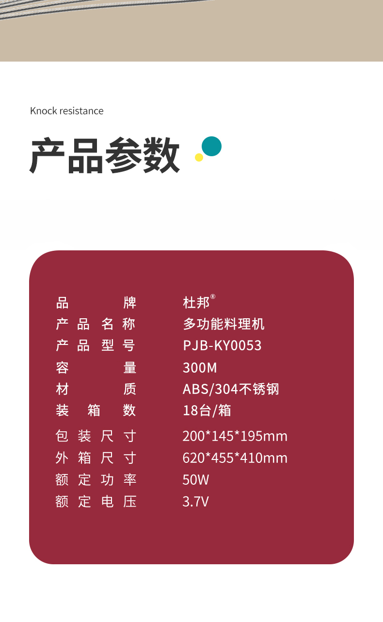 代发杜邦(DUPONT) 多功能料理机辅食料理机家用电动小型搅拌机打馅碎菜机PJB-KY0053