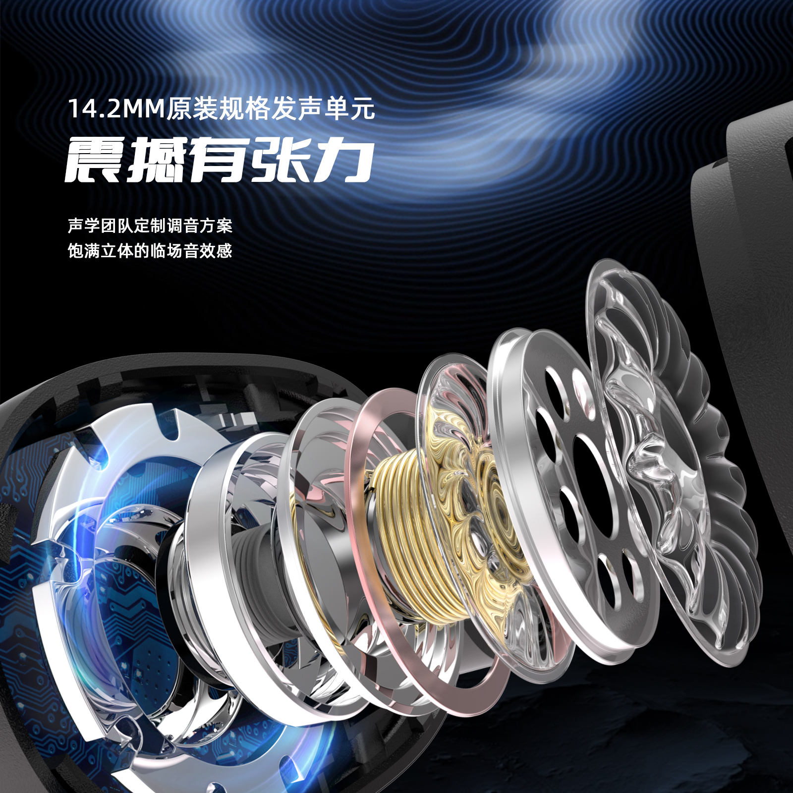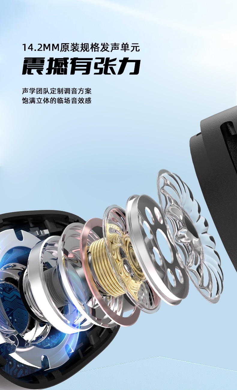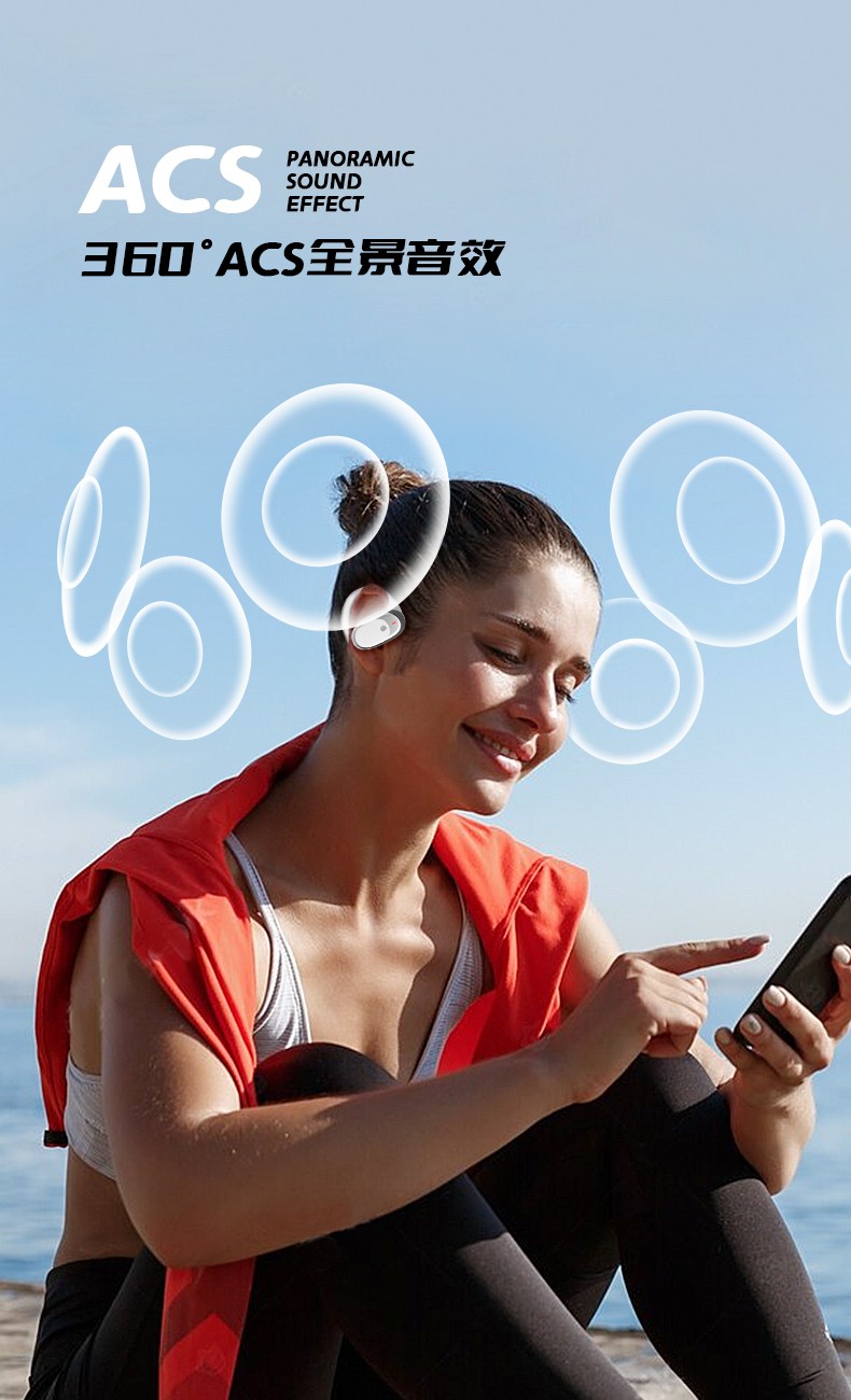1.智能降噪,削弱环境低频噪音,360°ACS全景音效,HIFI音质