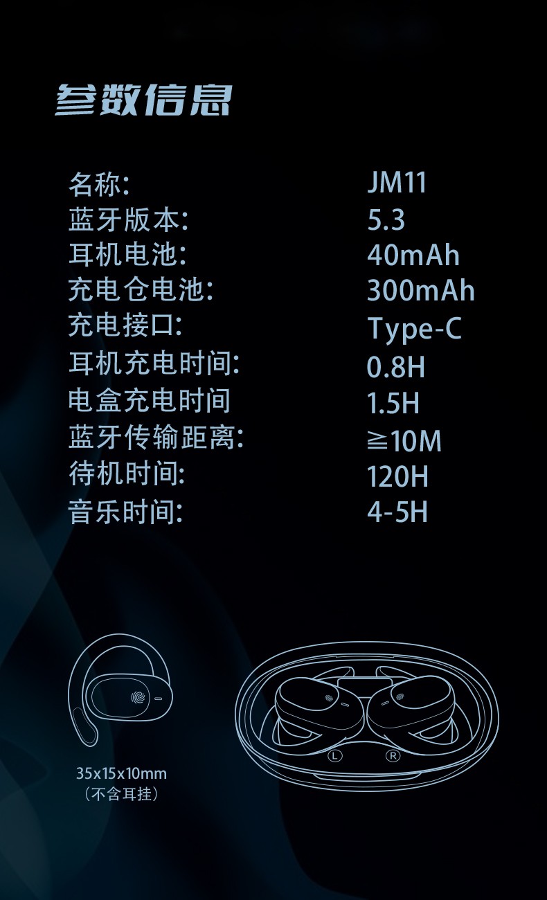 5.佩戴舒适不伤耳,Type-C快速充电,IPX5级全方位深度防水