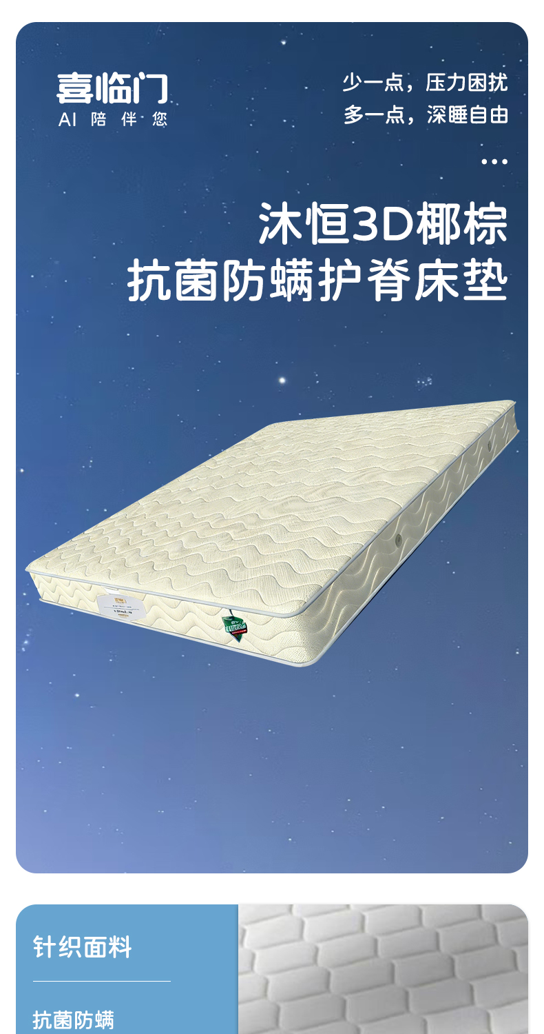 源头喜临门 沐恒3D椰棕抗菌防螨强效护脊床垫