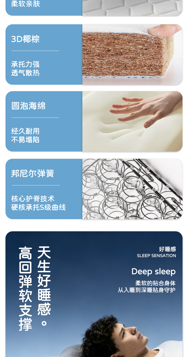 源头喜临门 沐恒3D椰棕抗菌防螨强效护脊床垫