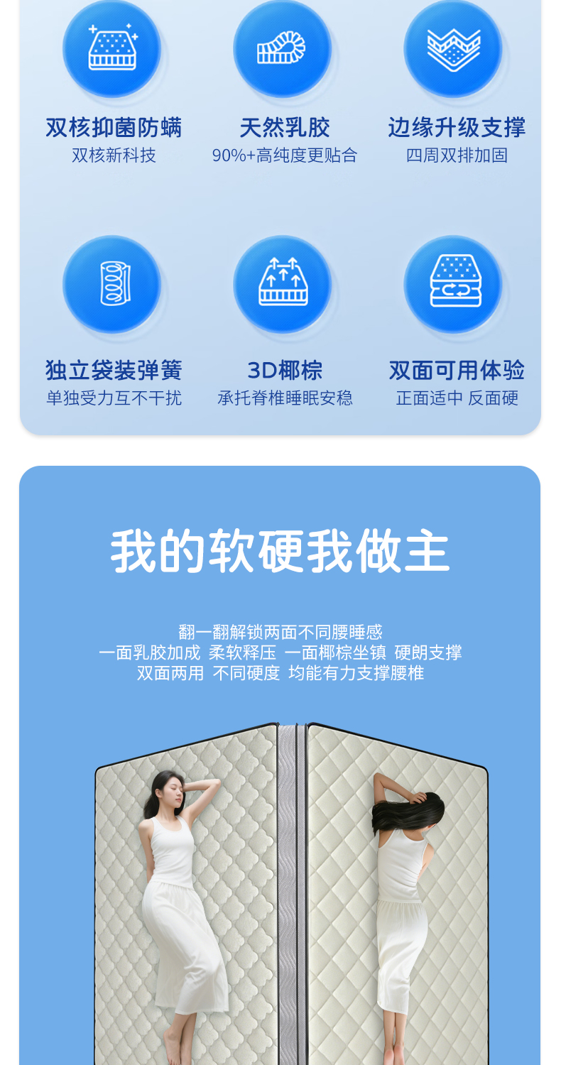 源头喜临门考拉进口乳胶椰棕双睡感抗菌防螨独立袋装弹簧床垫