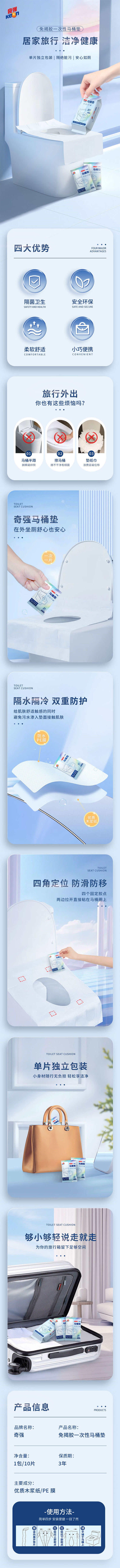 源头奇强 QQTDD309免揭胶一次性马桶垫 40cm*60cm*10片/5包/组
