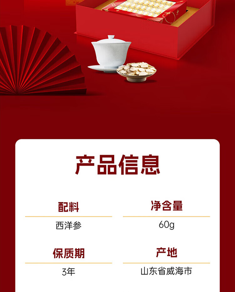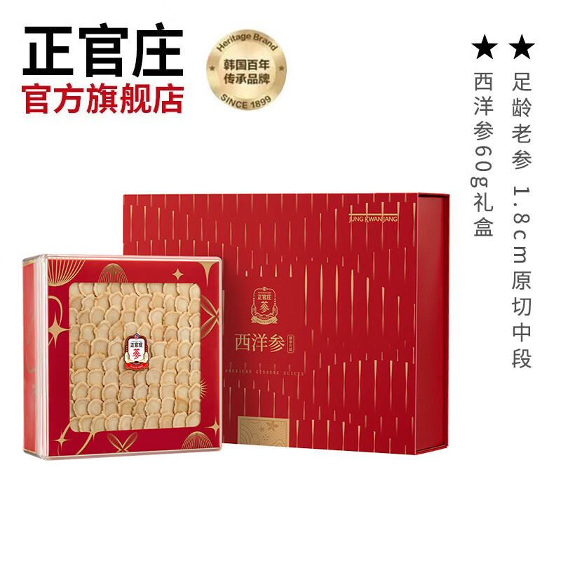 代发自营正官庄西洋参60g 礼盒(大片1.8CM)