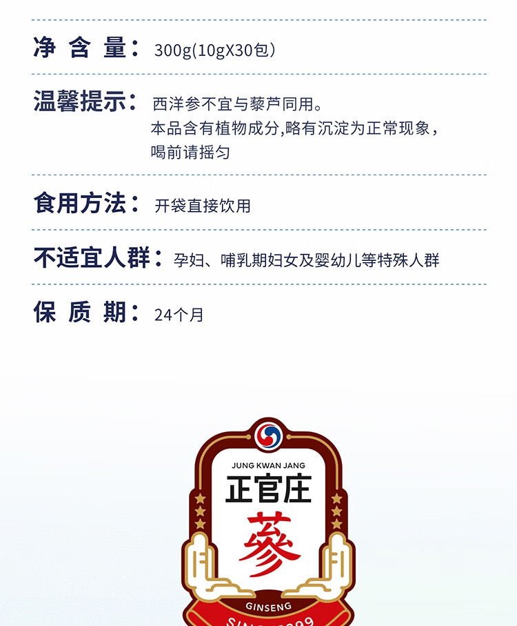 代发自营正官庄西洋参浆西洋参饮品10g*30包