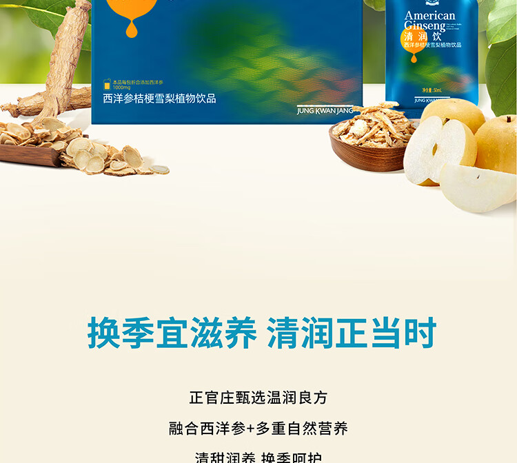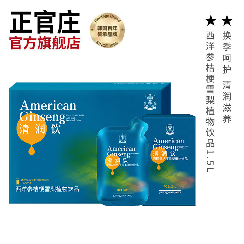 代发自营正官庄清润饮 西洋参桔梗雪梨植物饮品1.5L