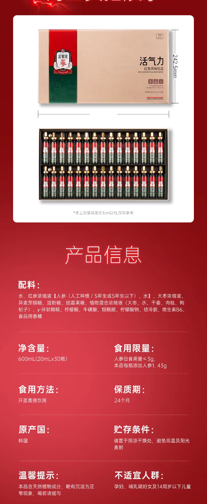 代发自营正官庄活气力20ml*30瓶