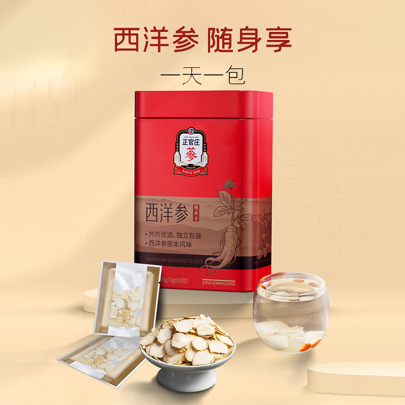 代发自营正官庄模压红参100g*2+西洋参片60g*2礼盒