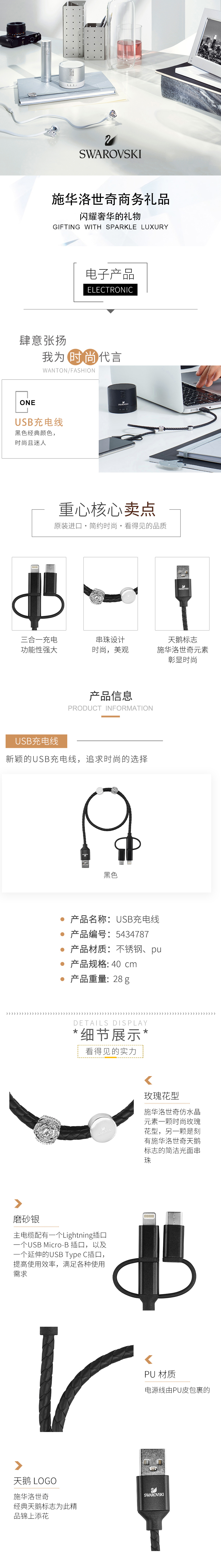 代发施华洛世奇三合一水晶USB充电线5434787