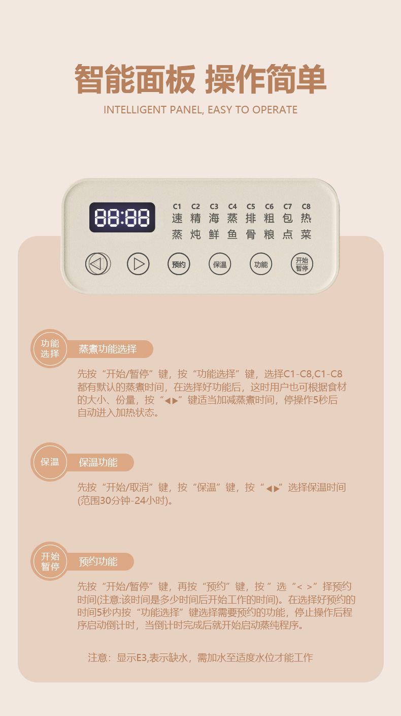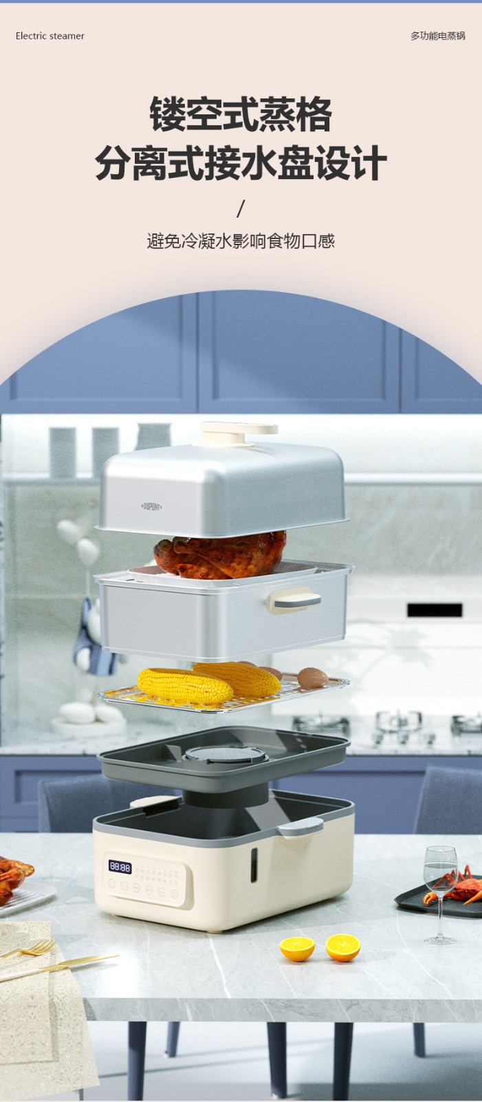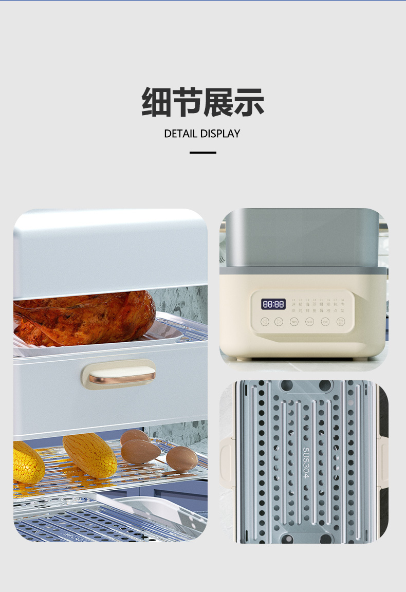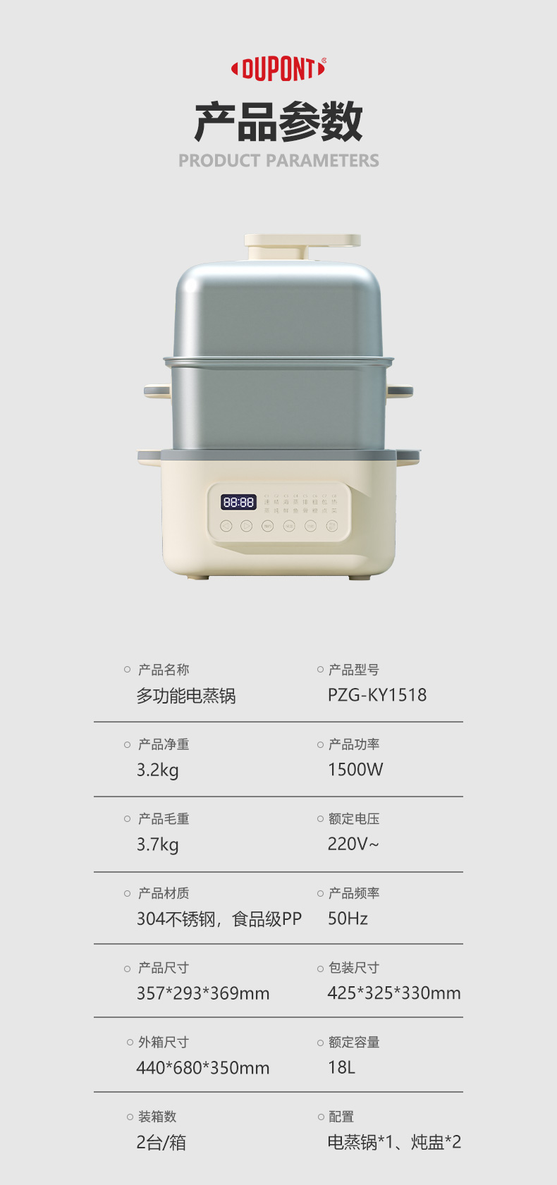 代发杜邦多功能电蒸锅PZG-KY1518食品级304不锈钢2层18L智能触控
