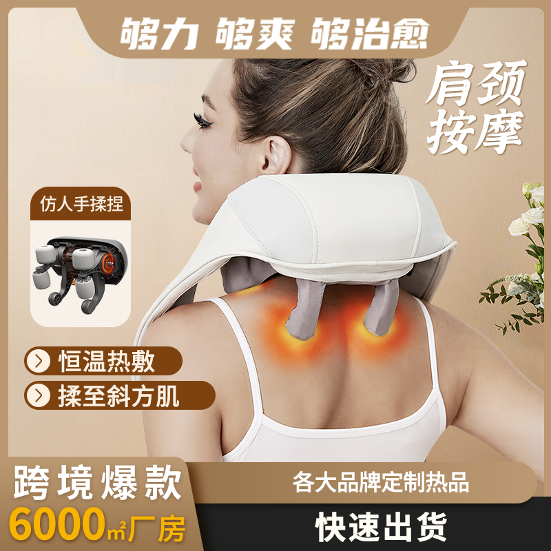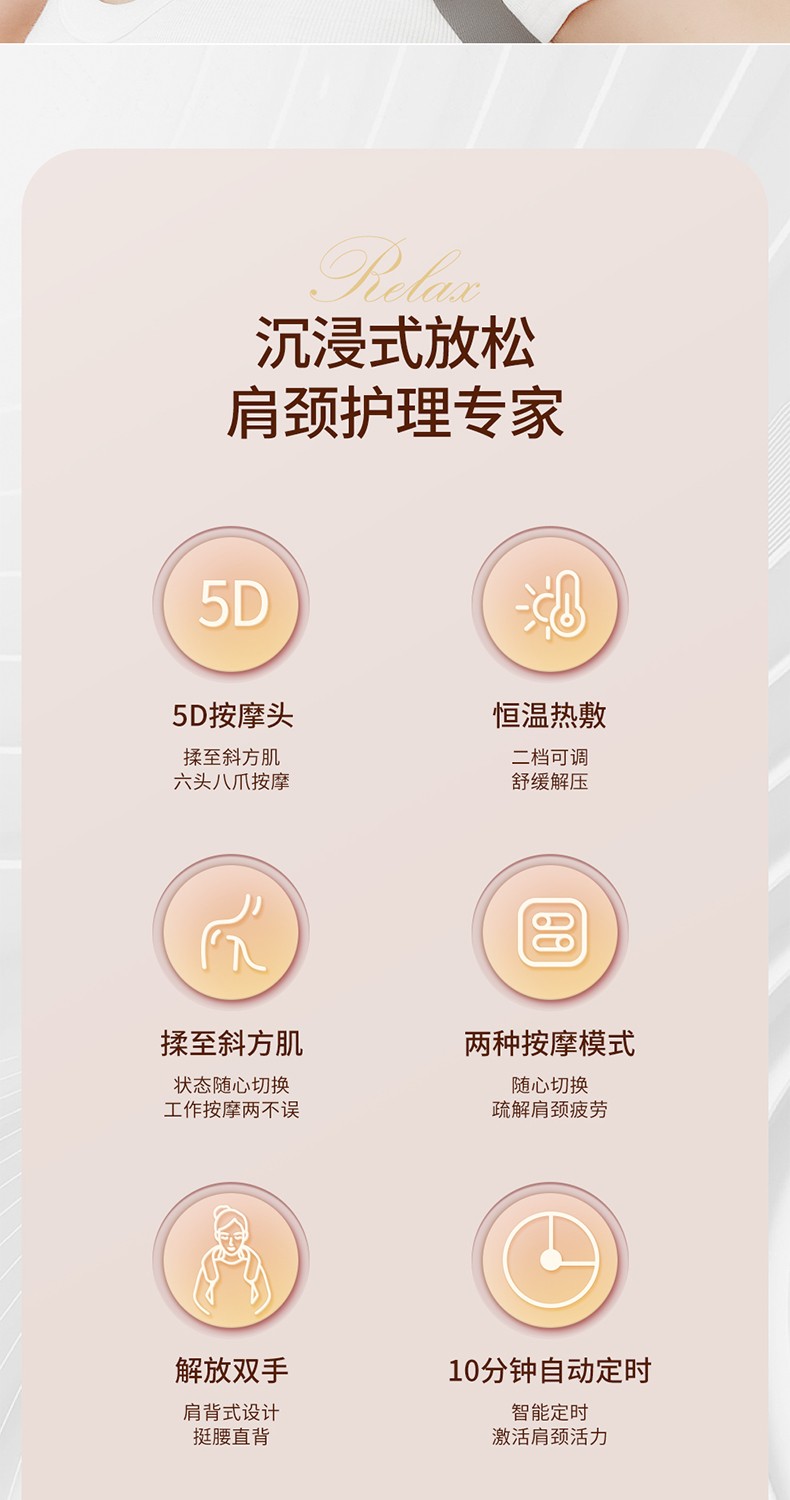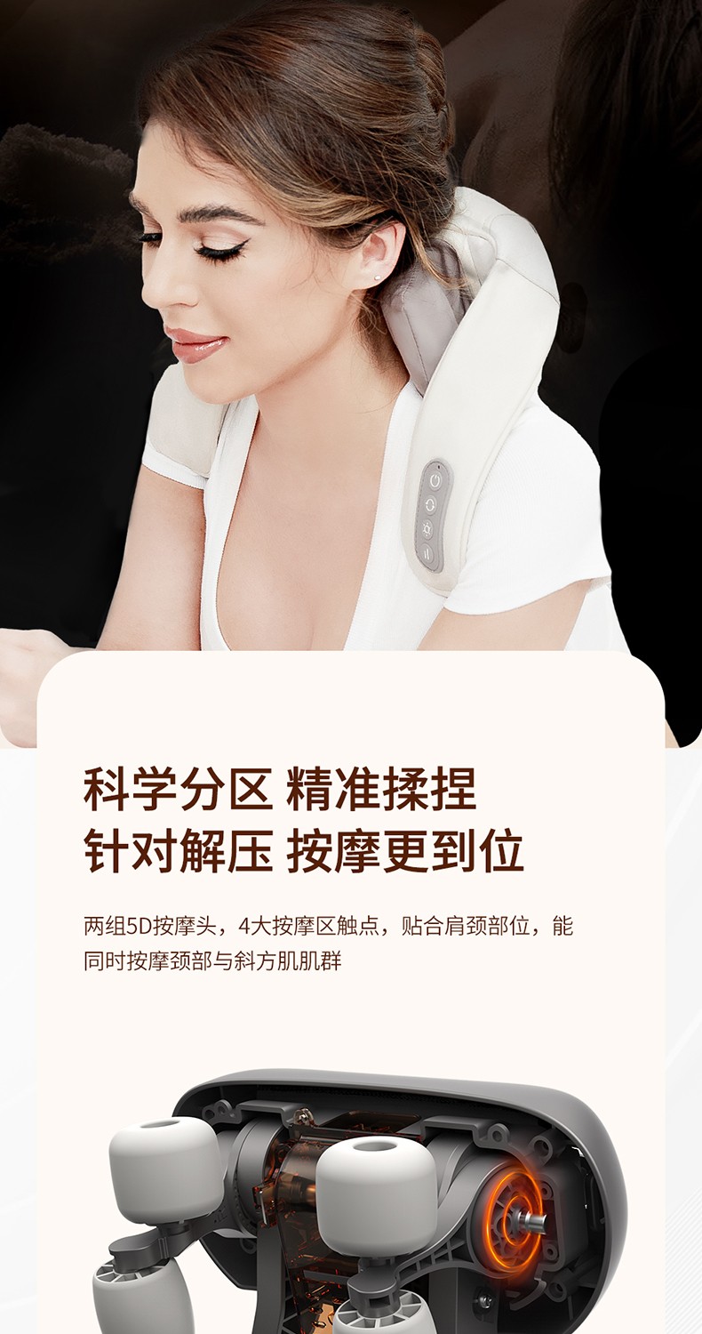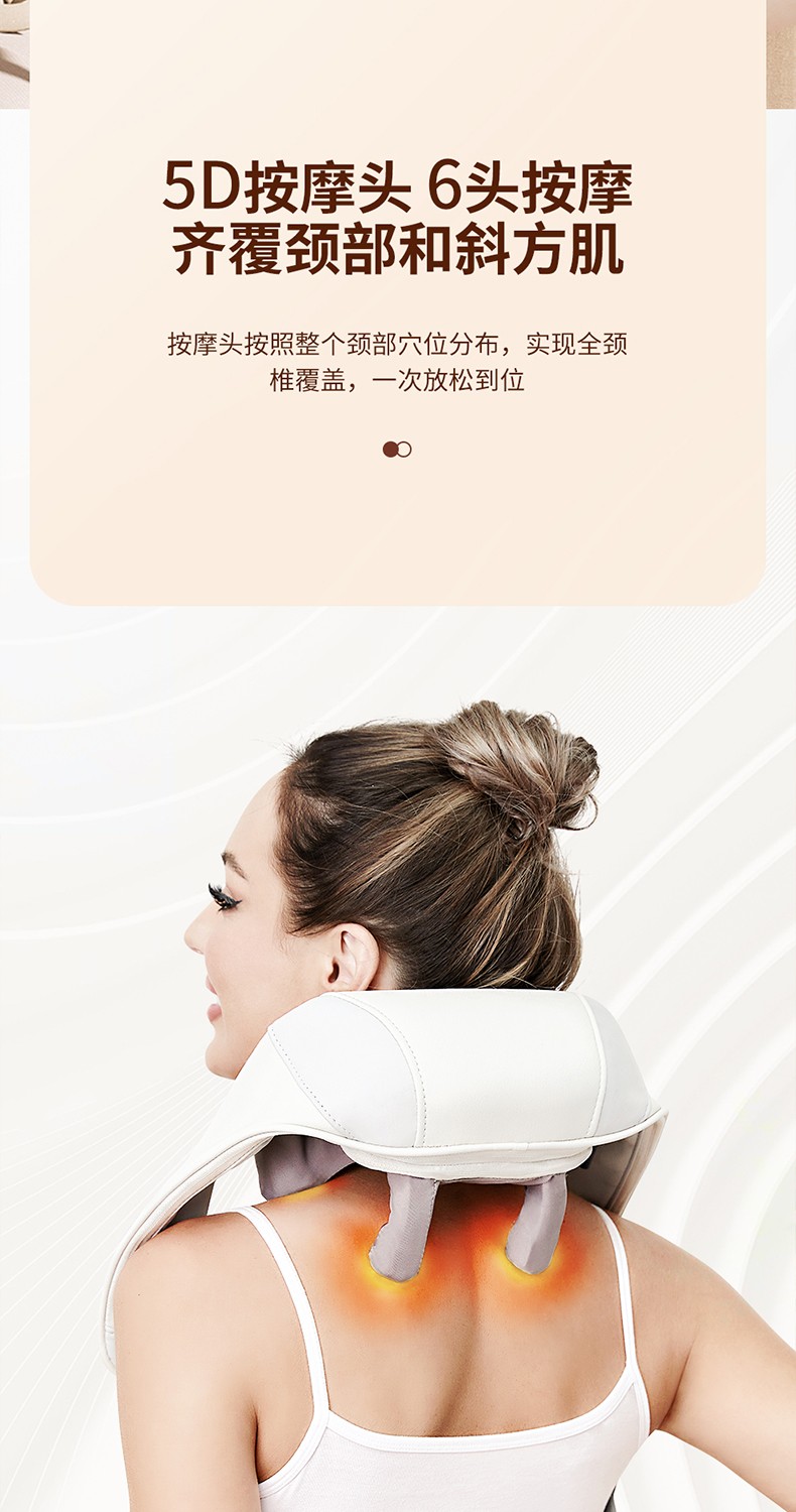 1.5D按摩头,6头按摩,同时按摩颈部与斜方肌肌群,专业手法,力度劲爽