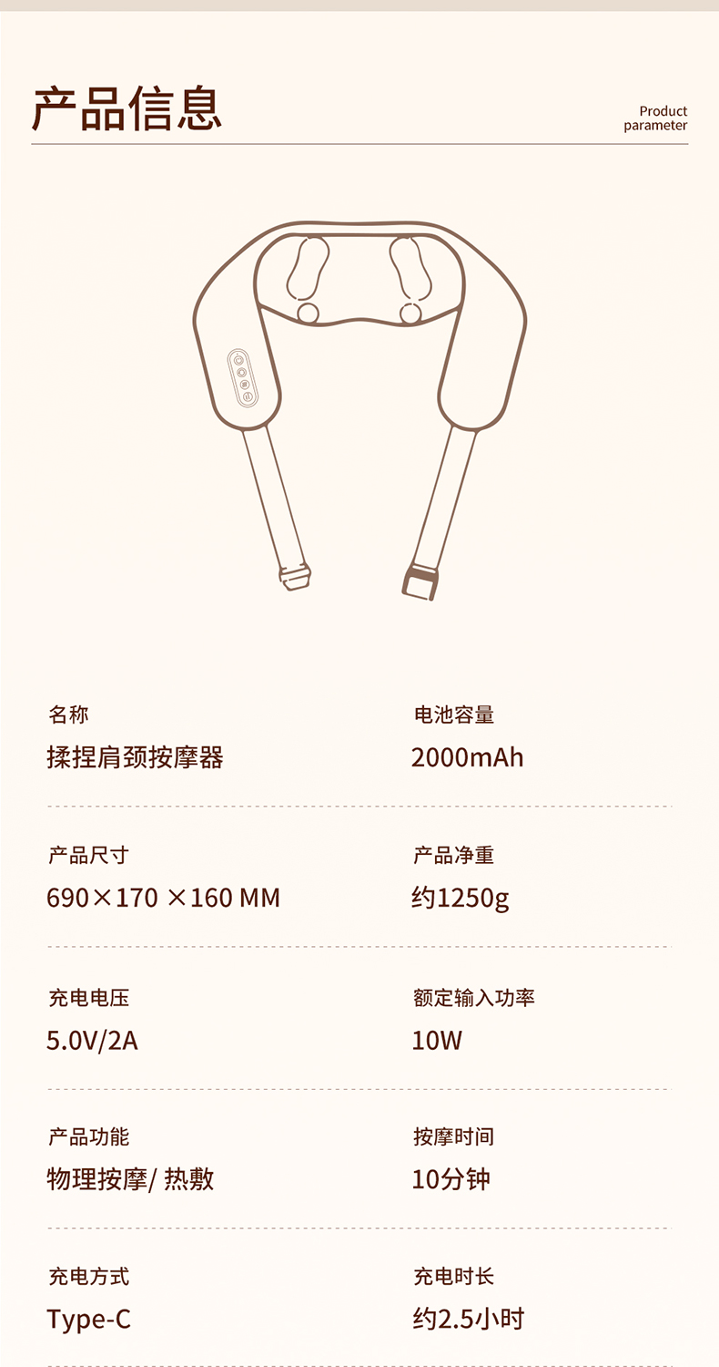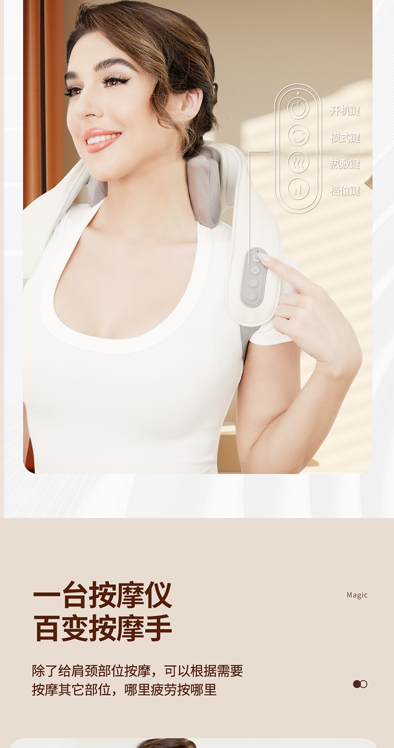 3.肩背式设计,解放双手,多部位按摩一机搞定
