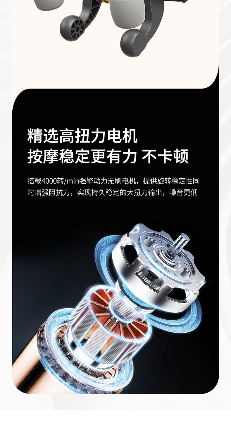 2.高扭力无刷电机,4000转/min高转速,稳定输出,低噪舒适
