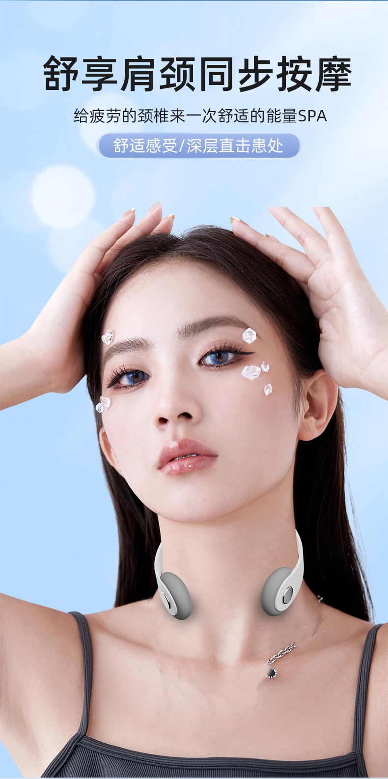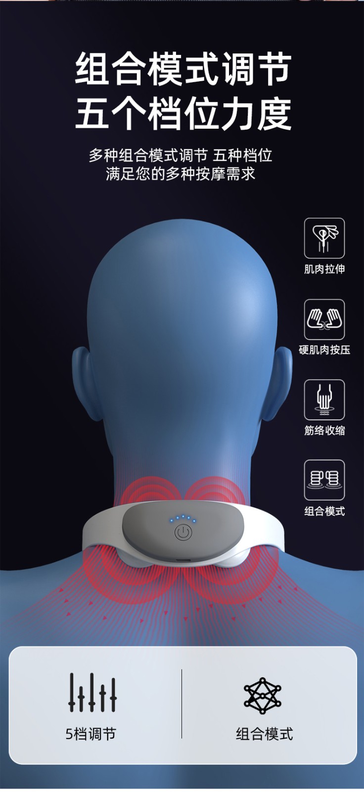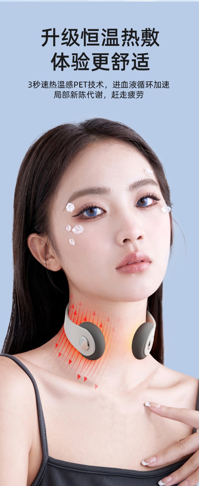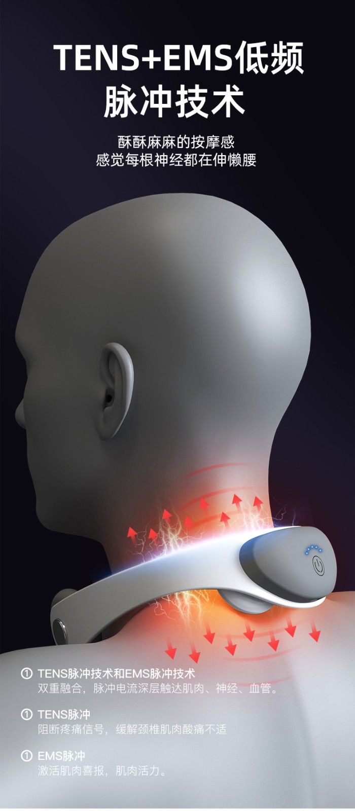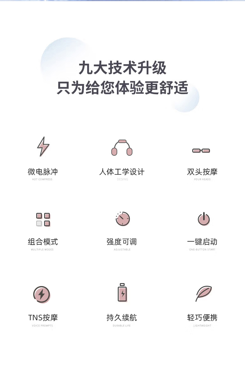 1.采用最新3d智能贴合技术,可根据颈部曲线轻松调节电极,使用更加舒适