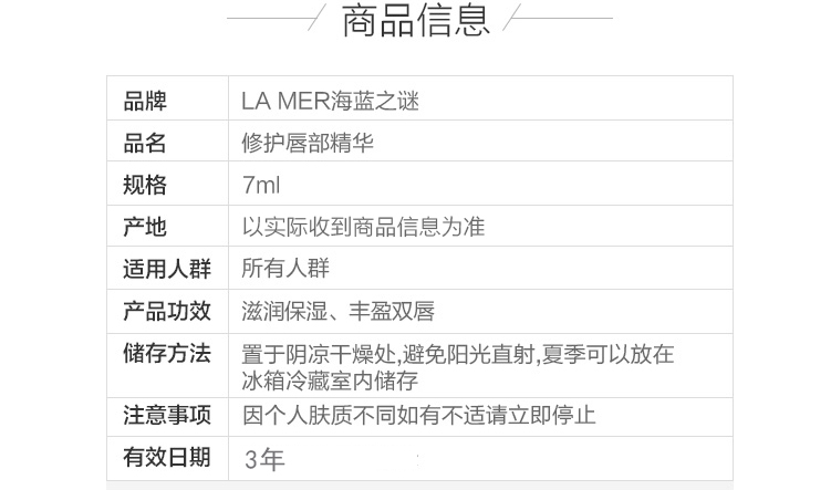 代发海蓝之谜(LA MER)修护唇部精华7ml温和润唇膏