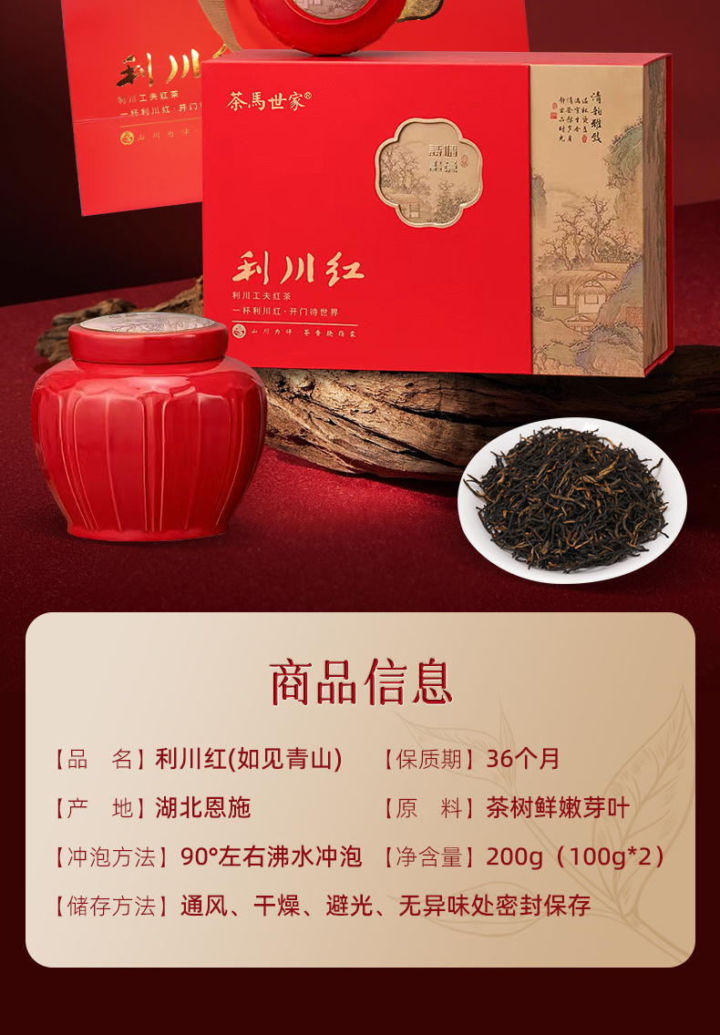 代发茶马世家恩施硒茶浓香型功夫红茶利川红如见青山礼盒200g(100g*2罐)