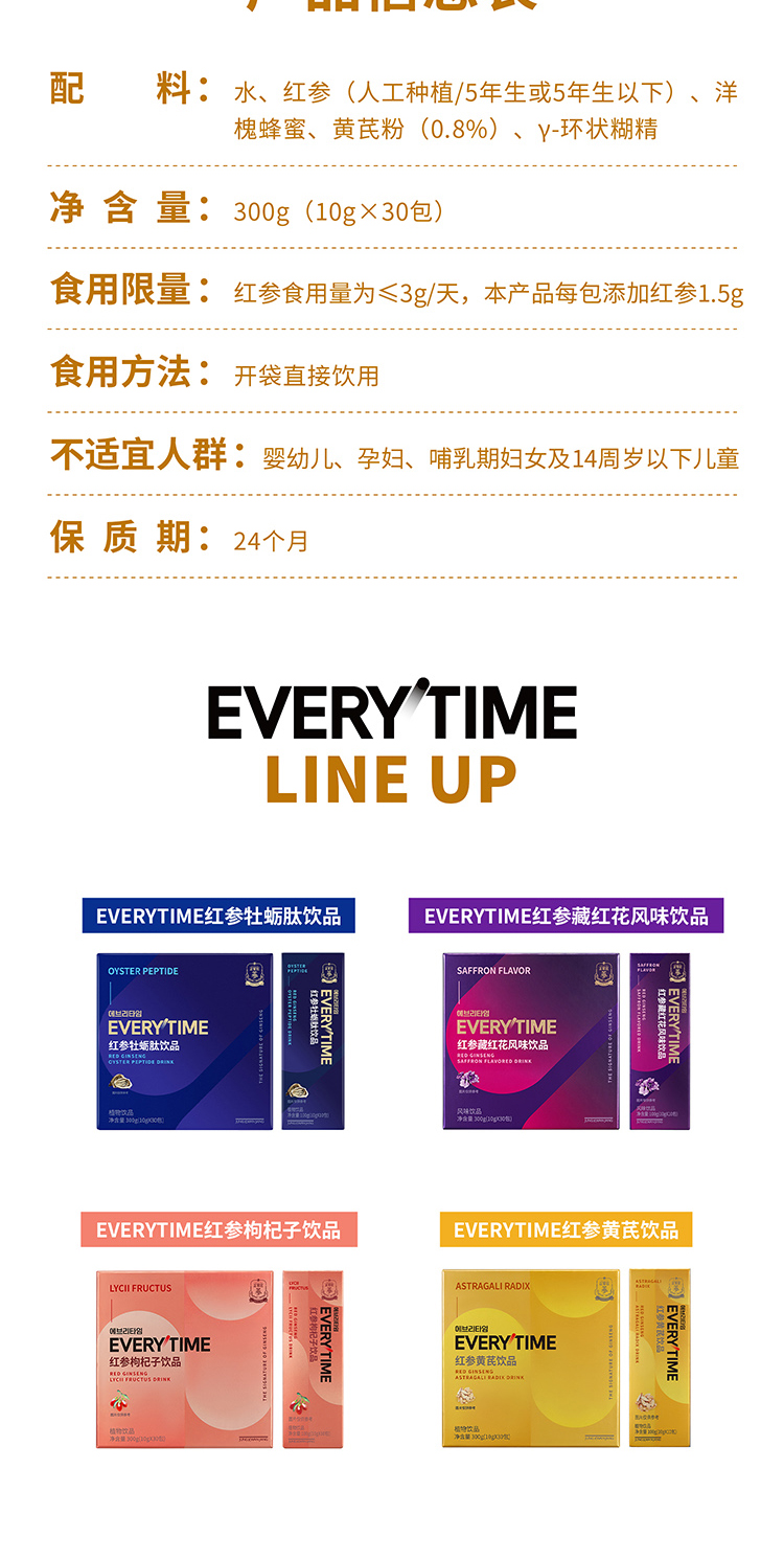 代发自营正官庄EVERYTIME红参黄芪饮品300g