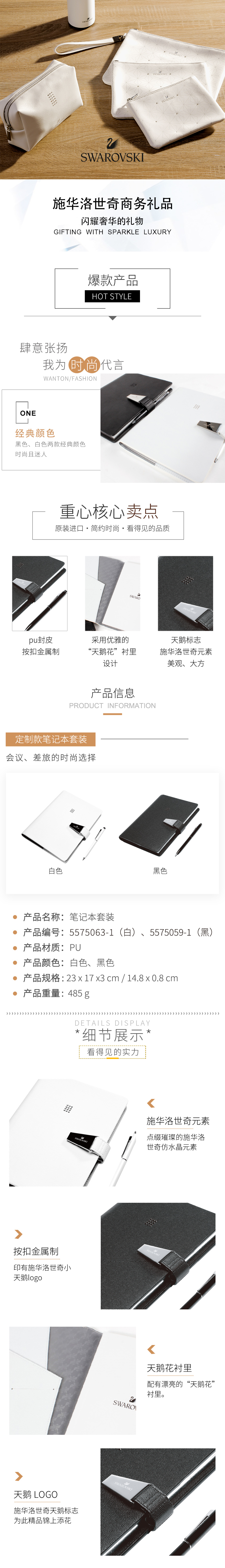 代发施华洛世奇 PU笔记本+水晶笔套装(黑/白)