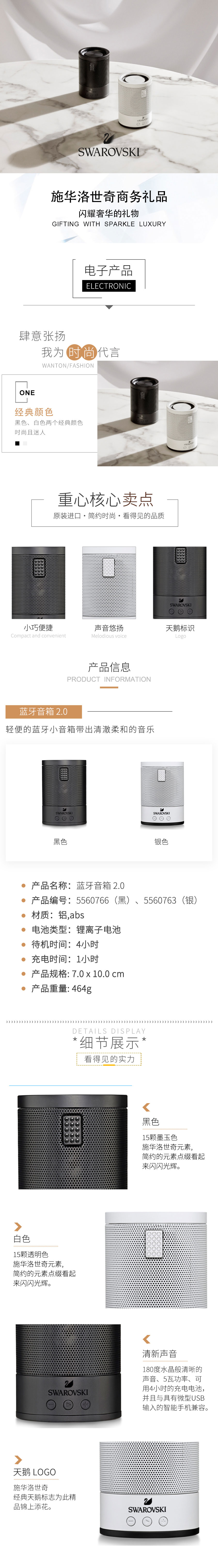 代发施华洛世奇水晶蓝牙音箱 2.0 黑/白
